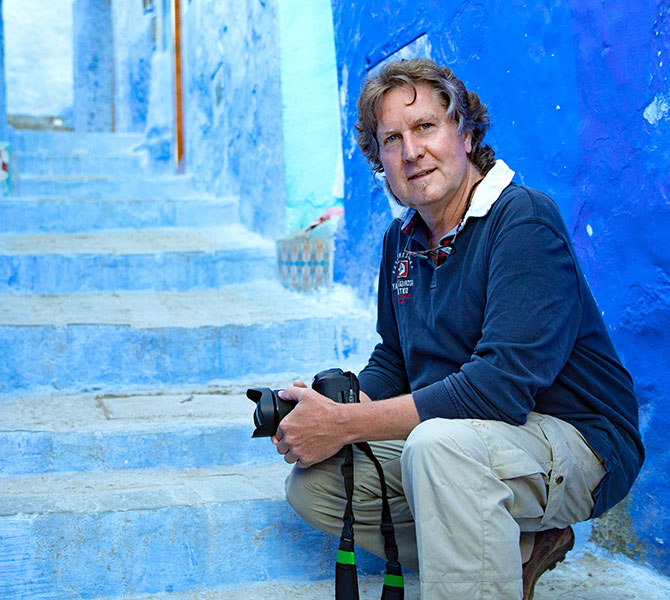Seine Reise führt durch verschneite Gipfel des Atlasgebirges, in blühende Bergtäler und zu den goldenen Dünen der Sahara. An der Atlantikküste begegnen sich Wüste und Meer, während in kleinen Dörfern und bei Nomadenfamilien die traditionsreiche Gastfreundschaft Marokkos spürbar wird.