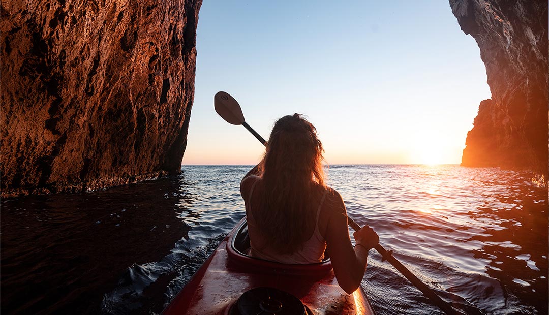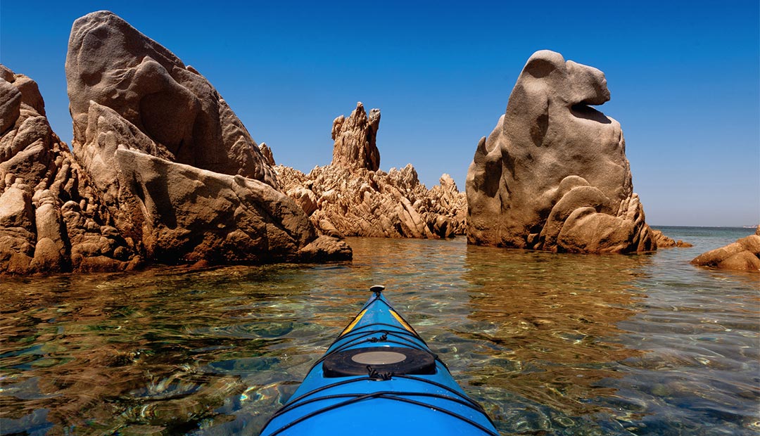 Zu Fuß, mit Kajak, Flossen und Gleitschirm